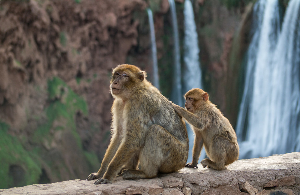 A su llegada, tendrá la opción de contratar a un guía local por un módico precio (aprox. 3 euros por persona) para que le acompañe en un agradable paseo cuesta abajo hasta las fuentes. Este sendero ofrece unas vistas increíbles a medida que se acerca a las impresionantes cascadas de Ouzoud, de 110 metros, a menudo resplandecientes con un arco iris permanente. Por el camino, es probable que se cruce con los juguetones simios de Berbería, conocidos por frecuentar la zona.