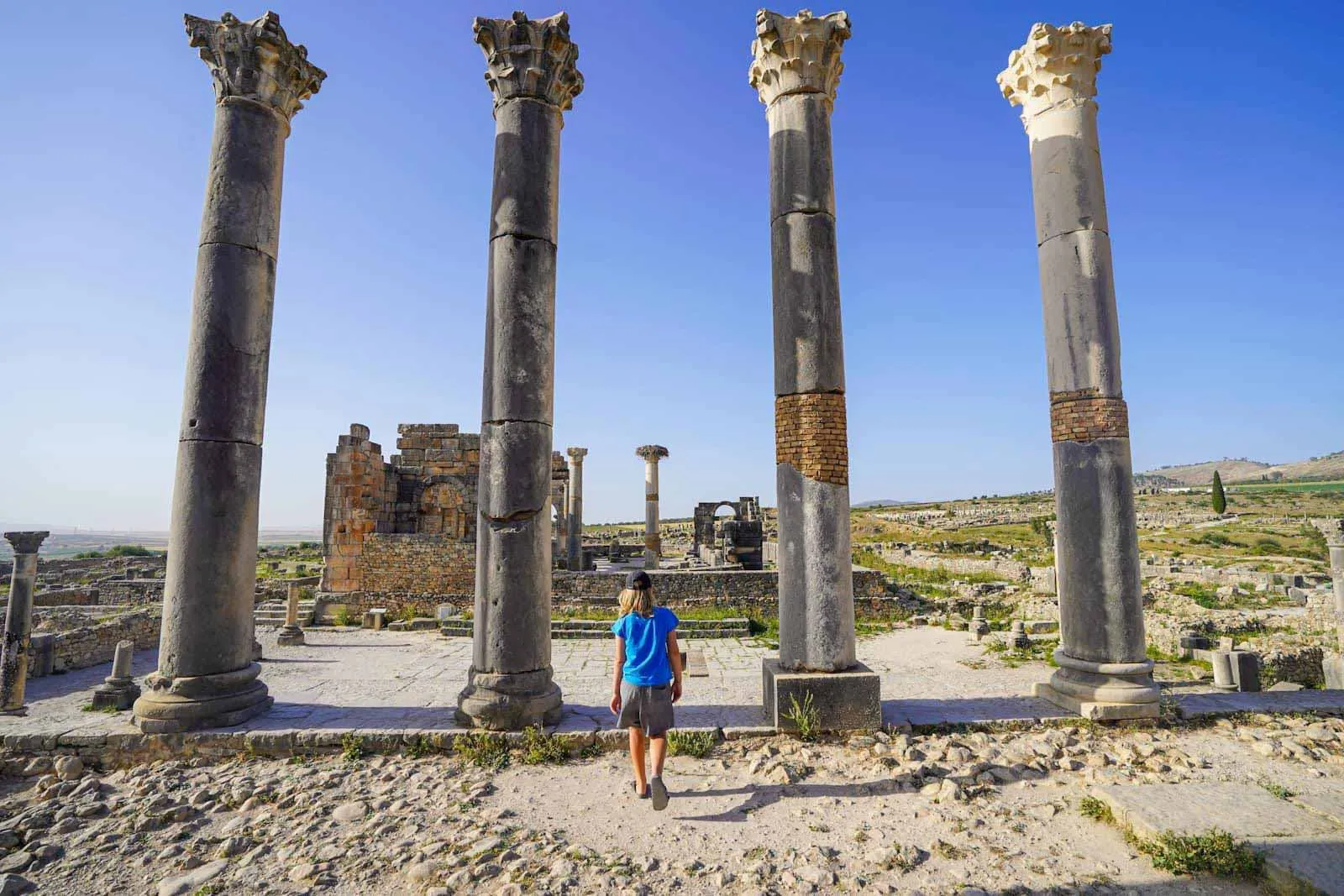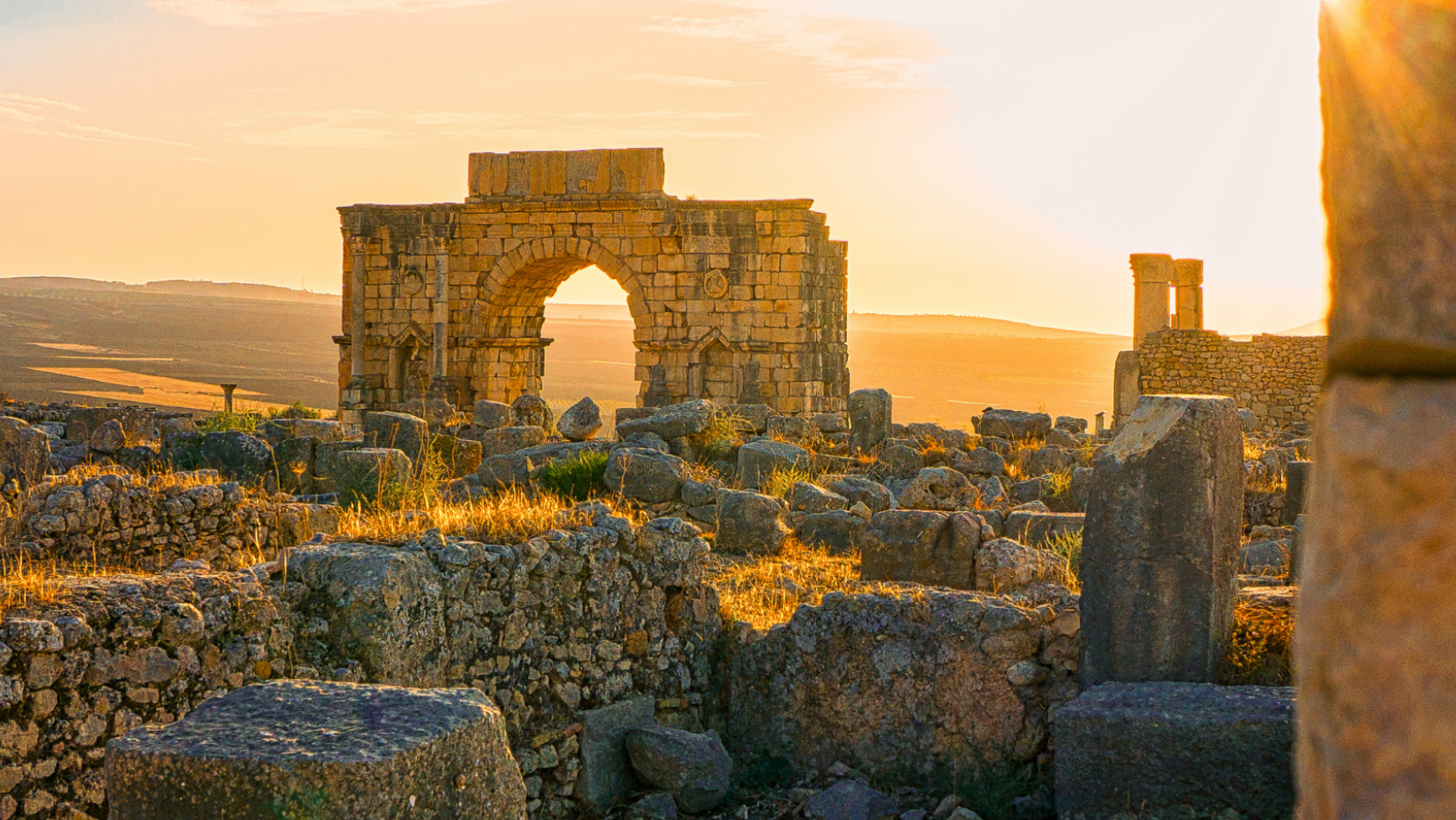 Planifique su visita: Tenga cuidado con el fuerte sol del verano: es imprescindible llevar agua y sombreros. La primavera ofrece una experiencia más suave, cuando las flores silvestres añaden toques de color a las antiguas piedras y el paisaje es de un verde vibrante. Los momentos más mágicos para pasear por Volubilis son las primeras horas de la mañana o las últimas de la tarde. Al anochecer, observe cómo los últimos rayos de sol bañan las columnas con una luz dorada para disfrutar de un momento realmente especial.