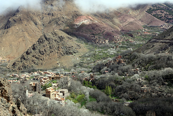 Una vez en Imlil, comenzará su exploración. Este encantador pueblo se encuentra en la base de la subida al Toubkal. Está a sólo 70 km de Marrakech. Tiene la opción de descubrir el pueblo a pie. Alternativamente, puede optar por un paseo tradicional en mula. Esta es una corta caminata hasta la famosa Kasbah Toubkal. Allí, hará una pausa para un delicioso almuerzo entre exuberantes jardines. Desde este punto, disfrutará de vistas de montaña realmente impresionantes. Además, si desea caminar más, es posible realizar excursiones cortas. Puede visitar lugares pintorescos cercanos como Armed o Tizi N’Tachdirt. El pueblo igualmente ofrece varios alojamientos, pensiones, cafés y restaurantes.
