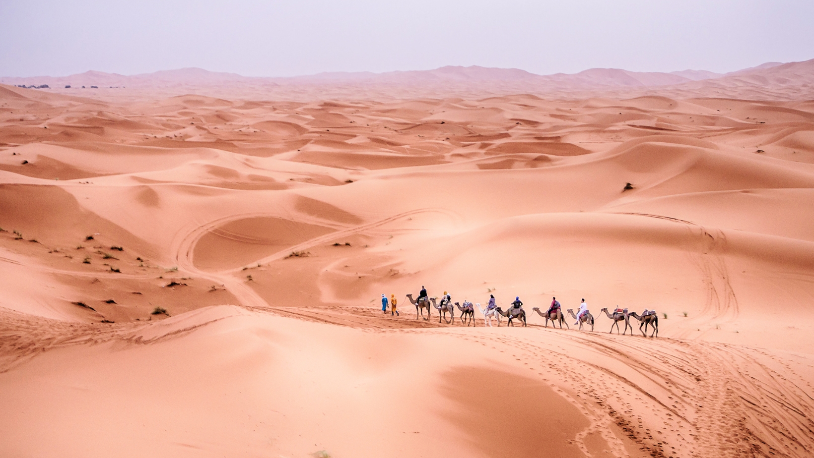 Viaje a través de las montañas del Atlas Medio, pasando por pintorescos pueblos bereberes. Llegada a Merzouga, donde se embarcará en una excursión en camello por el desierto del Sáhara. Pase la noche en un lujoso campamento del desierto bajo un manto de estrellas.