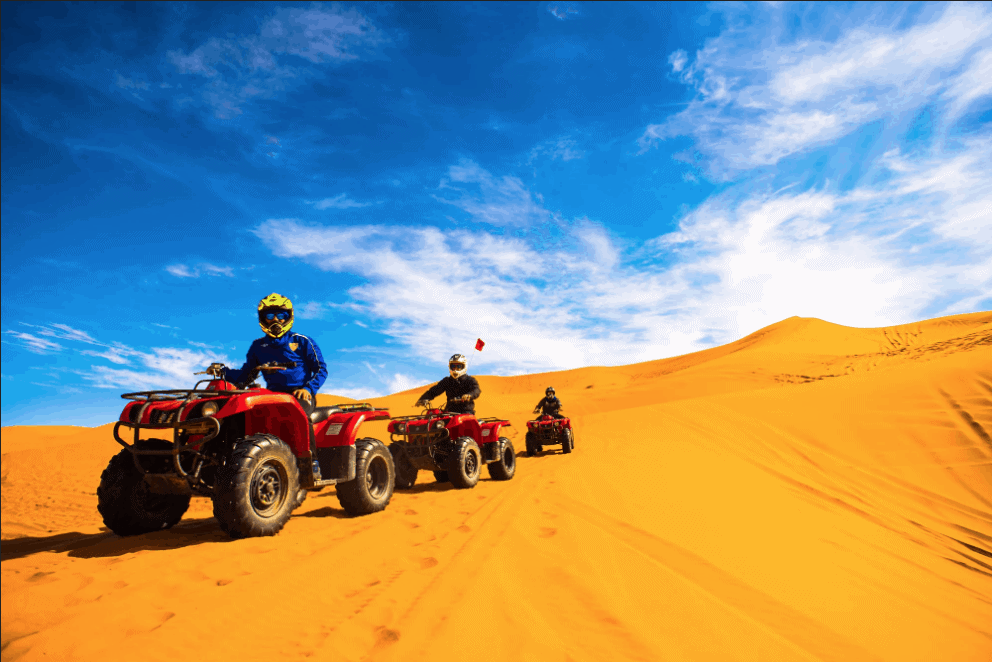 Los quads son una forma excepcional de explorar el Sáhara. Tanto si es un piloto experimentado como un completo principiante, adaptamos la experiencia a su nivel de comodidad, su forma física y lo que espera conseguir. Los principiantes recibirán una sesión introductoria para coger confianza antes de salir.